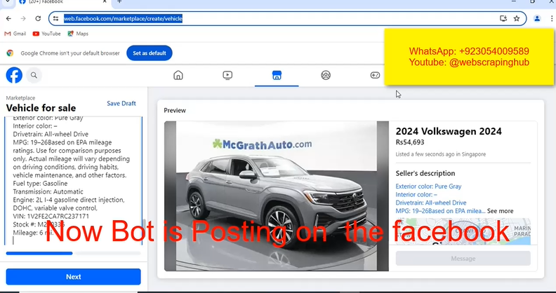 Our Custom Automation Bot is designed to automate the entire workflow — from scraping product data to publishing listings directly to your Facebook Marketplace account.